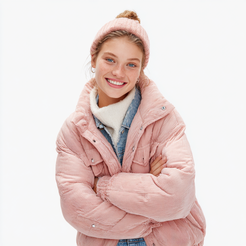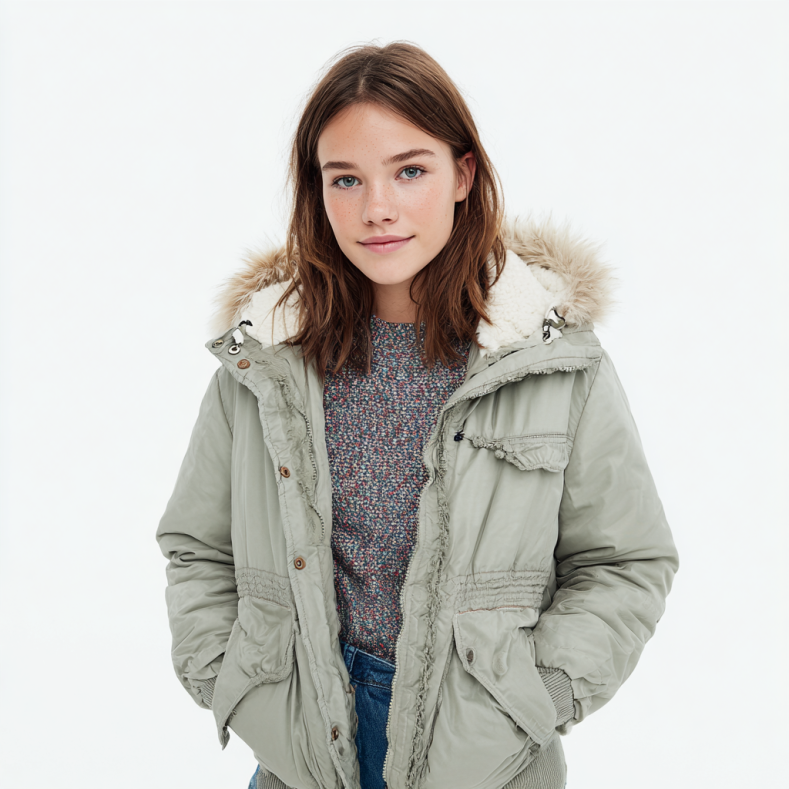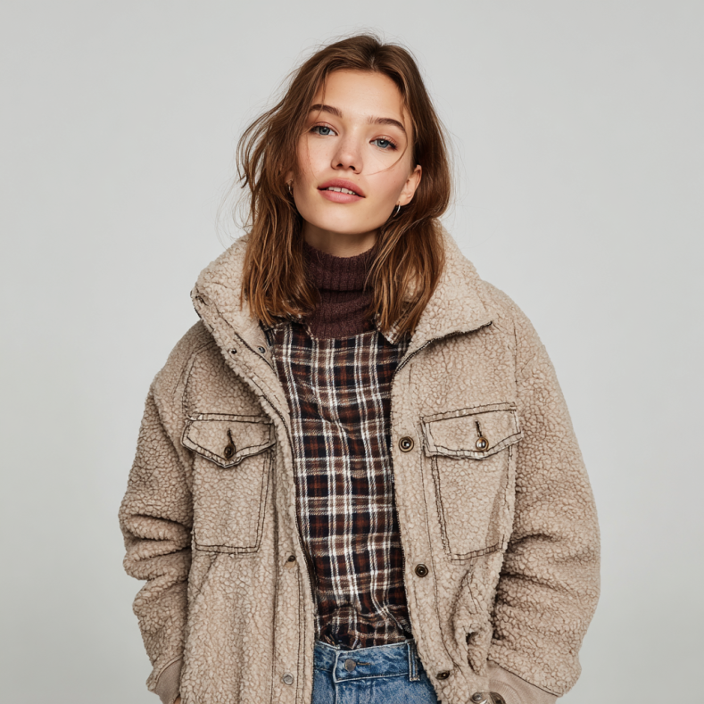 Wir verwenden verschiedene Qualitätsmaterialien: Baumwolle für T-Shirts, nachhaltige Mischgewebe für Jeans und wärmende Materialien für unsere Winterjacken und Strickwaren.